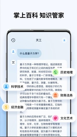 3、 在知识问答方面,天工AI助手具备强大的知识储备,能够解答众多领域的,包括科学技术、文化艺术、历史地理、经济、生活常识等。