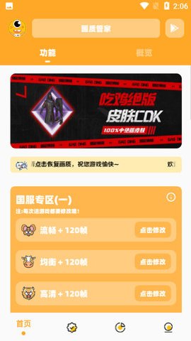 4、 在打开软件后,你可以在首页的【功能】里面根据自己的游戏版本和需求选择一个画质。