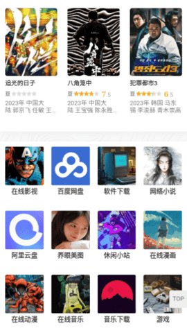 1、这款软件提供了在线影视、百度网盘、软件下载、网络小说、阿里云盘、养眼美图、休闲小站、在线漫画、在线动漫、在线音乐、音乐下载、游戏等各种资源的搜索功能。