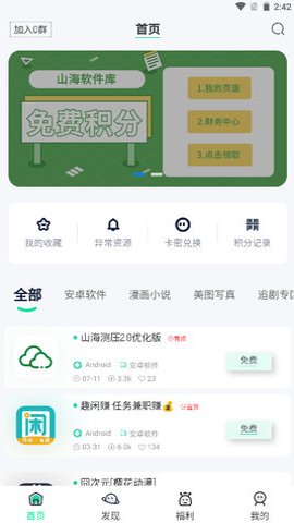 1、 山海软件库是一款提供海量免费资源的软件,用户可以在这里下载各种应用工具、追剧软件、漫画小说阅读软件等。