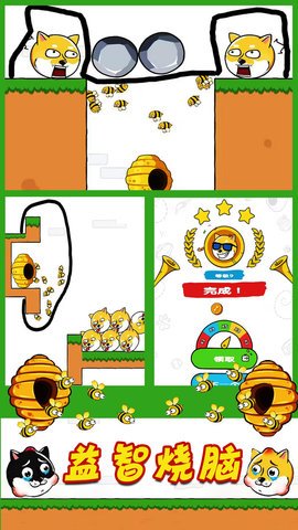 蜜蜂狗的冒险是一款益智休闲类手游,玩家可以在游戏中进行冒险闯关。游戏采用了搞怪的蜜蜂群、轻快的背景音乐和魔性的游戏画风,让人瞬间感到放松。游戏的关卡非常丰富,每个关卡的地形都不一样,难度也会逐渐增加,需要玩家动动脑筋。