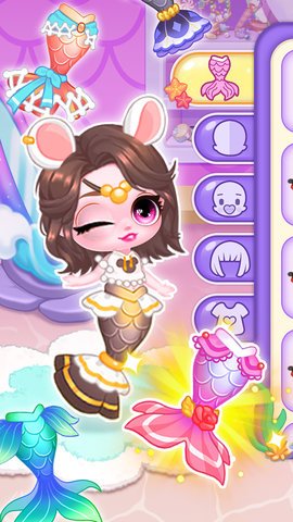 3、你可以选择自己喜爱的风格的人鱼公主,并帮助她们搭配服饰和外观形象。