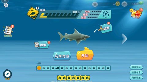 2、解锁下一只鲨鱼需要满足前一只鲨鱼的等级、加速和速度、咬力均满级的条件。