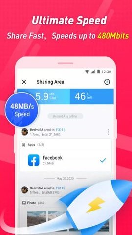 4、相比其他依赖慢速蓝牙连接或需要互联网连接的文件共享应用程序,sharekaro以高达20MB/s的闪电般的速度传输文件。