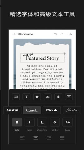 3、所有的字体都经过精心挑选,让您可以通过我们的故事创建器为照片添加文字,为视频添加文字。