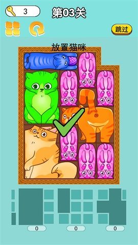 1、游戏中的方块形状都是由猫咪的形象设计而成的,玩家需要将它们合理地放入指定区域中。