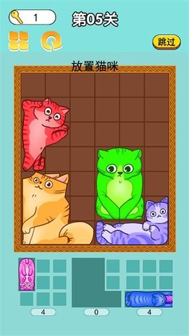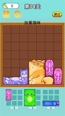 5、游戏类似俄罗斯方块,但又有自己的特色,通过猫咪形象的方块进行堆叠和拼接,完成新的关卡,享受更多消除乐趣。