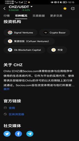 Chz币app是一个虚拟货币钱包和虚拟货币交易平台,它是一个体育娱乐类粉丝参与激励平台。该平台基于Chiliz区块链基础设施构建,并使用CHZ币作为平台的原生通证。这个平台为粉丝提供了参与球队事务决策的机会。