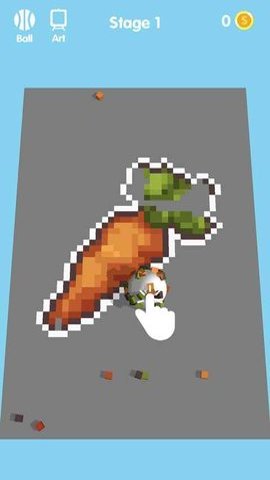 2、通过操作小球进行绘画,收集方块并粉刷绘制图画,玩家可以提升自己的艺术修养,成为一位艺术大师。