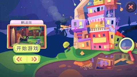2、 第一关中,玩家首先进入游戏并选择了后院作为场景。