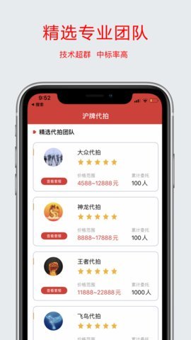 1、上海沪牌代拍App还精选了专业团队,他们拥有超群的技术,能够提高中标率。