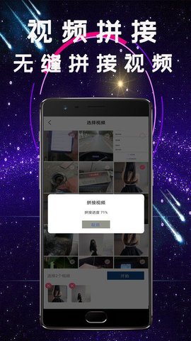 3、此外你还可以选择需要拼接的视频,快速将几个短视频组合成一个完整的视频作品。
