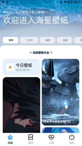 1、海星壁纸不仅提供了大量精美的壁纸,还支持特色分类,让用户能够自定义自己的手机主题。