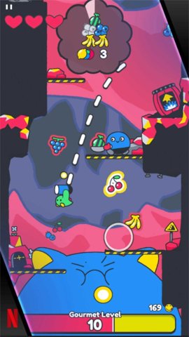 2、玩家需要边跳边躲避坏蛋,并投喂身后的蓝色怪兽,从而不断向更高处进发。