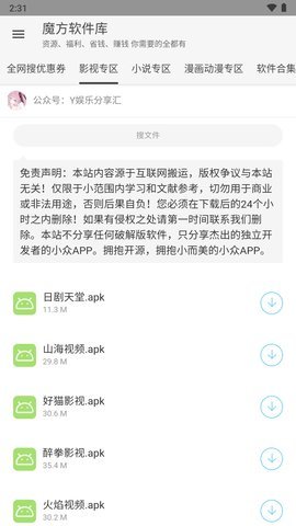 3、此外魔方软件库App还推出了资源聚合平台,满足用户观看视频和阅读漫画的需求。