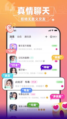 2、 爱文漂流瓶以漂流瓶为主题,集合了秘密漂流瓶、爱文匹配、交友广场、七天情侣、神秘邂逅、亲密CP、专属恋人、守护等多种功能。