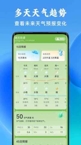 1、无论你身在何处,都可以通过光天气了解目标地区的天气变化趋势。
