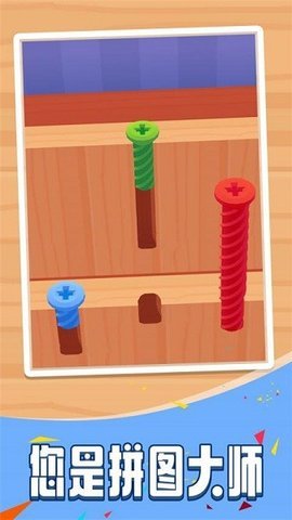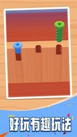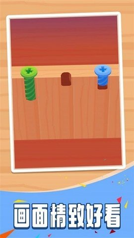 休闲益智类手游卡通闯关类休闲游戏拧螺丝模拟器中,玩家们可以像在现实生活中一样将螺丝拧入木板中。每个关卡所给出的螺丝长度都是不同的,这将考验玩家的耐心。游戏的玩法非常简单,但却具有很强的趣味性。