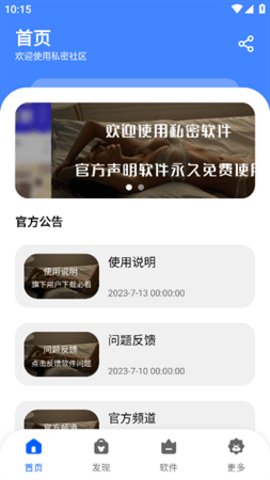 私密社区App是一款提供各种精品优质软件分享的平台,为用户提供了一个方便快捷的免费下载和使用软件的渠道。这个平台上有大量好用且免费的软件资源,而且这些资源还会实时更新,用户可以随时随地进行免费下载,无需花费任何费用。不仅如此,这里的软件种类也非常丰富,几乎涵盖了所有类型的软件资源,用户可以轻松找到自己所需的软件,并进行快速下载。