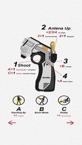 3、如果你选择手枪模式,你可以扣动扳机,还可以按下枪托上的两个按键。