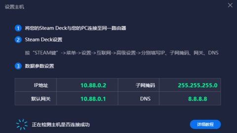 3、在SteamDeck网络中选择正在连接的Wi-Fi或有线连接在同一个路由器下(有线连接更加稳定)。