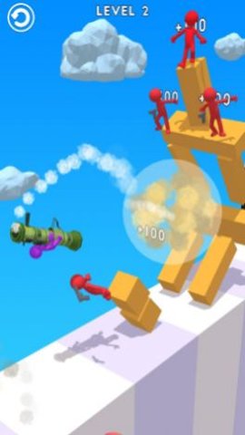 2、敌人所搭建的建筑物上都会有很多士兵镇守,只有一举将其全部击杀才能避免更大伤害。