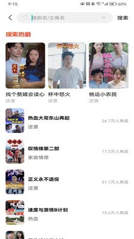 2、通过浏览热播排行榜和使用搜索功能,用户可以快速找到自己感兴趣的短剧视频作品。
