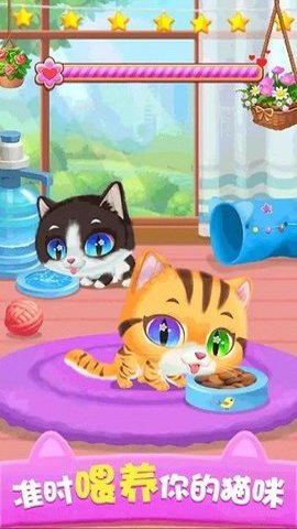 3、玩家需要照顾小猫咪的吃饭、喝水、睡觉,还要带它们玩耍和上厕所,如果它们脏了,还要帮它们洗澡。