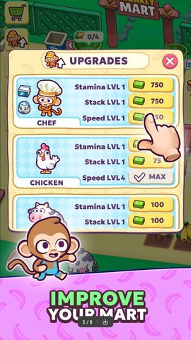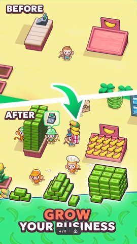 3、 准备好在猴子超市中开启你的经营冒险了吗建设你的超市帝国,赢得繁荣和成功吧。