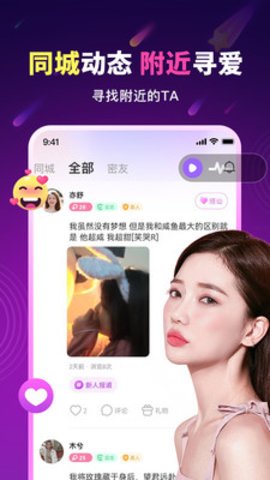 2、现在,你也可以开启线上交友的新方式,通过语音交友、同城附近、文字聊天等多种方式,快速脱单。