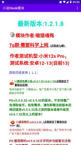 3、只有在确保兼容性的情况下,用户才能顺利地使用小说Hook模块,享受免费阅读小说的乐趣。