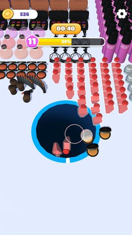 3、你可以自由操控黑洞,并吞噬各种美妆化妆品,让你的黑洞不断成长变大。