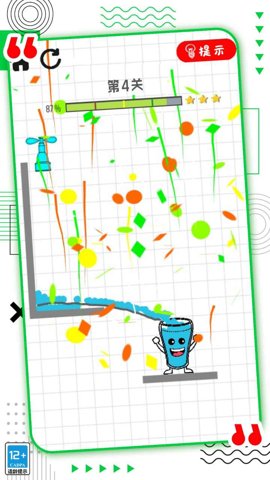 3、玩家需要连动各种不同的线条来让物品最终流向玻璃杯中,当玻璃杯中彩色物品装满后,玻璃杯就会露出笑容。