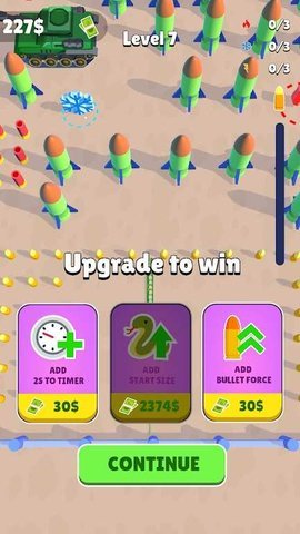 这款全新推出的街机风格闯关小游戏是一款奇葩休闲类手游,旨在为玩家提供解压和搞笑的游戏体验。玩家需要通过引导小蛇吞食各种武器弹药,如坦克、火箭、炸药TNT、机枪腰带、武器、炸弹、霰弹枪子弹等。当玩家吃到这些物品时,他们的蛇会变得更大、更强大,最终进化成真正的武器。