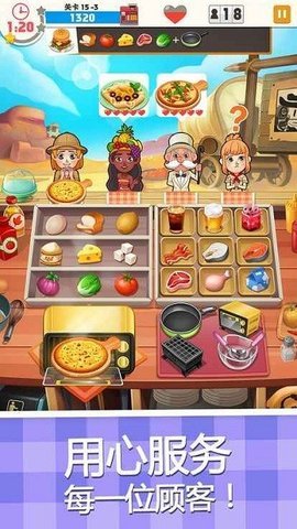 2、游戏中的顾客都渴望品尝美味的披萨,你需要在美味餐厅的厨房里不断忙碌,满足顾客的订单。