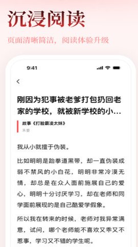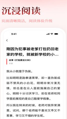 3、它聚焦于热门故事,为读者提供了清晰简洁的沉浸阅读页面,让阅读体验得到升级。