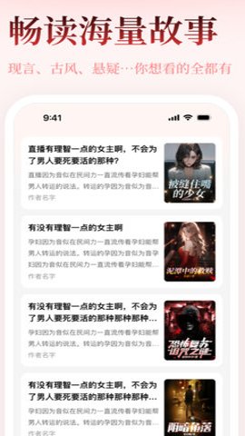 1、精选的书库中只有精品故事,你可以轻松畅读海量故事,包括现言、古风、悬疑等各种题材。