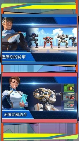 4、这款游戏以机器人对战为主题,玩家可以自由组合各种机甲战士,操控自己的机器人进行完美的战斗。