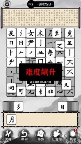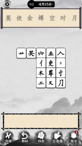 2、初始关卡多为五言律诗,玩家需要在方块中找到被拆分的文字并将其合并填入诗词中。