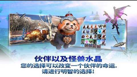 2、玩家可以在游戏中收集多达300多种各类怪物,一起战斗、骑乘、飞行,并体验收集的乐趣。