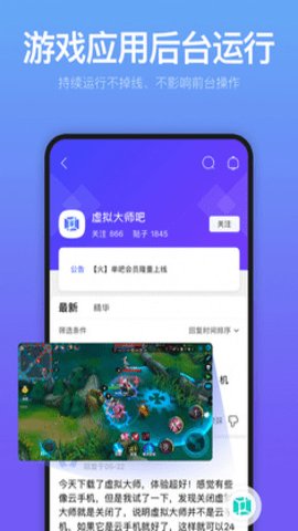 3、这个应用程序可以真机和虚拟机双开应用和游戏,并且支持同屏操作和悬浮窗切换,甚至可以在后台运行。