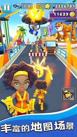 1、游戏中的场景包括地铁、高速公路、宫殿和丛林,玩家可以在这些场景中进行穿梭,体验极致刺激的跑酷游戏,成为一名跑酷明星。