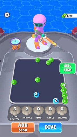 1、玩家可以通过收集材料和制作道具,来升级自己的潜水装备和水下武器,提高捕鱼效率和生存能力。