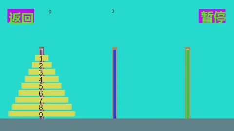 1、九层汉诺塔有多个难度等级可供选择,每个难度等级都有不同的盘子数量,难度不同。