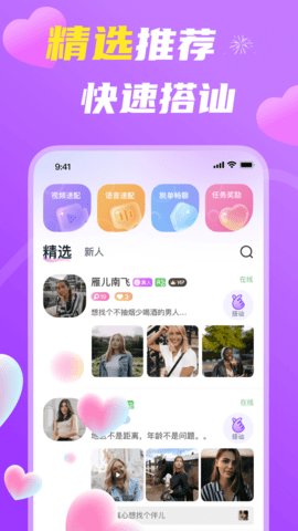 享伴是一款高质量的手机交友APP,它汇集了来自全国各地的朋友。无论你身在何处,都可以在这里找到各种类型的好友,满足不同用户的交友需求。与此同时享伴还提供了丰富多样的互动交友玩法,让你可以全面地享受交友的乐趣,找到兴趣相投的异性好友。