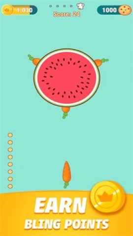 2、玩家只需要向食物扔出飞刀,击中食物即可获得Bling积分。