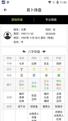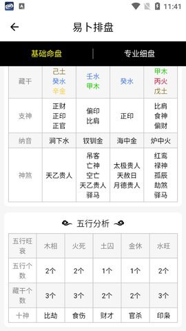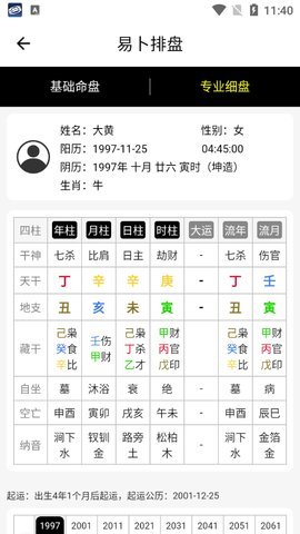 3、 为了满足不同用户的需求,易卜排盘App根据一般八字爱好者的使用习惯进行了排版展示的定制。