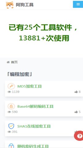 2、 目前,阿狗工具已经提供了25个工具软件,被广大网友使用超过数万次。