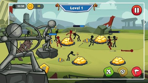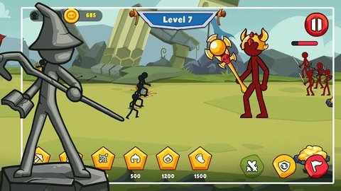 1、丰富的兵种选择和技能释放,以及火柴人大军在战场上的激战,给玩家带来了视觉和战斗上的享受。