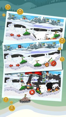 1、玩家需要不断升级自己的实力,打造出最强大的坦克,以清除来袭的敌人。